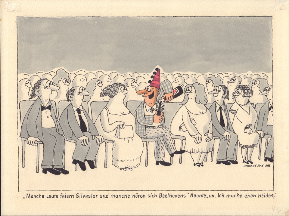 Für alle, die mit guten Vorsätzen ins Jahr 2026 wechseln … sei diese Karikatur von Reiner Schwalme aus den 1980er Jahren Erinnerung und Denkanstoß zugleich … was die Schwierigkeiten von deren Umsetzung betrifft! Das gesamte Lebenswerk von Reiner Schwalme wird von der „Stiftung Museen für Humor und Satire“ bewahrt.